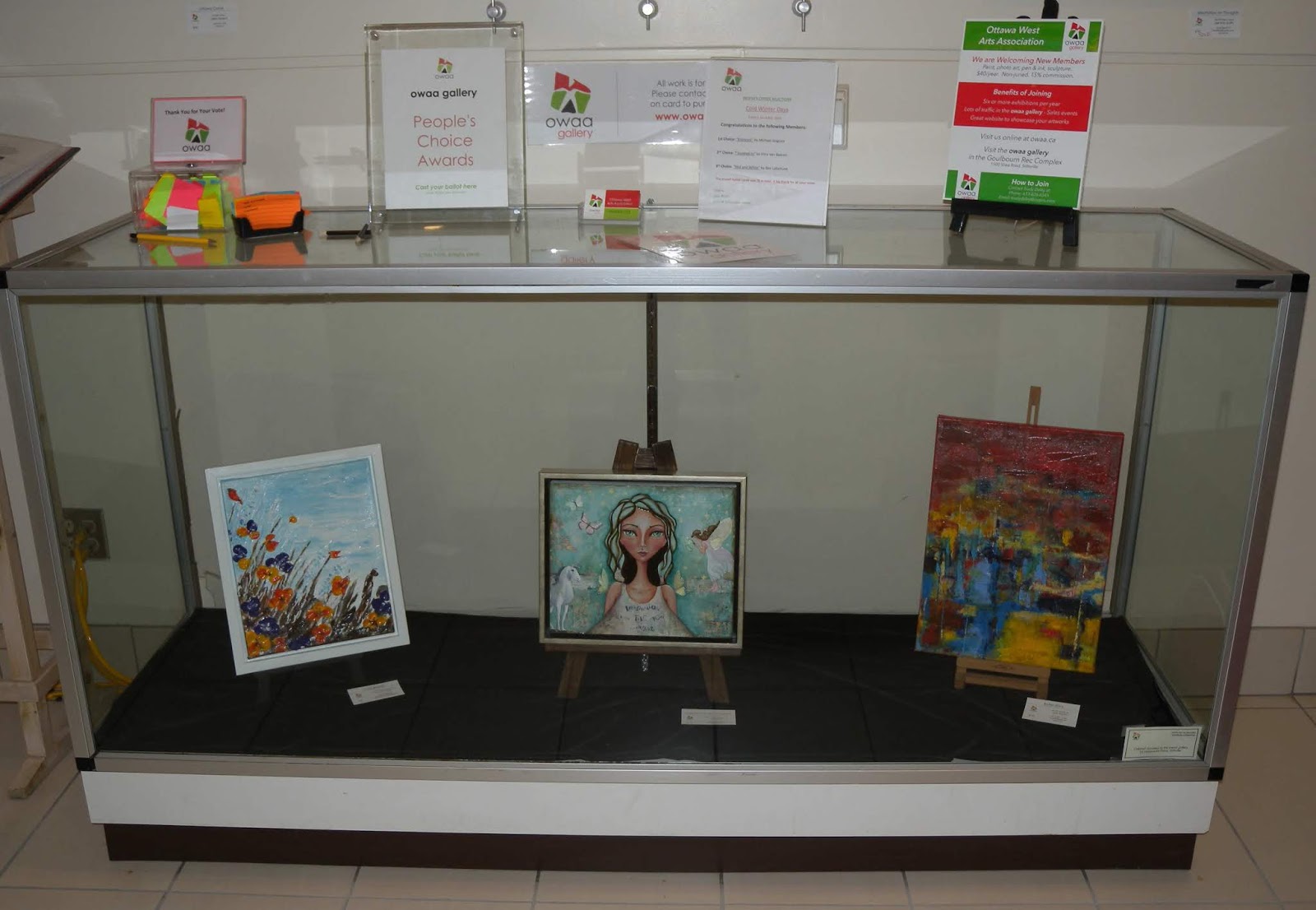 I love that the City of Ottawa provides exhibition spaces at community and recreation centers for local artist. At the CARDELREC Recreation Complex in Stittsville, former Goulbourn Rec Complex, the Ottawa West Arts Association (OWAA) currently presents newest works by its members.